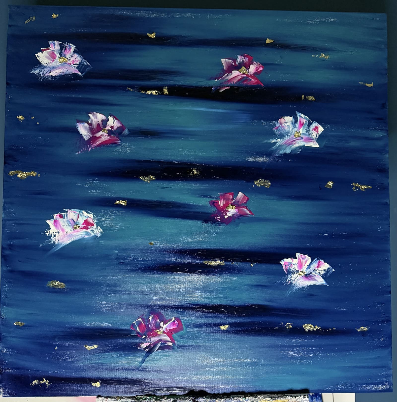 Huile sur toile- Feuille d'or - Dimension 80x80 cm - Chassis 3D