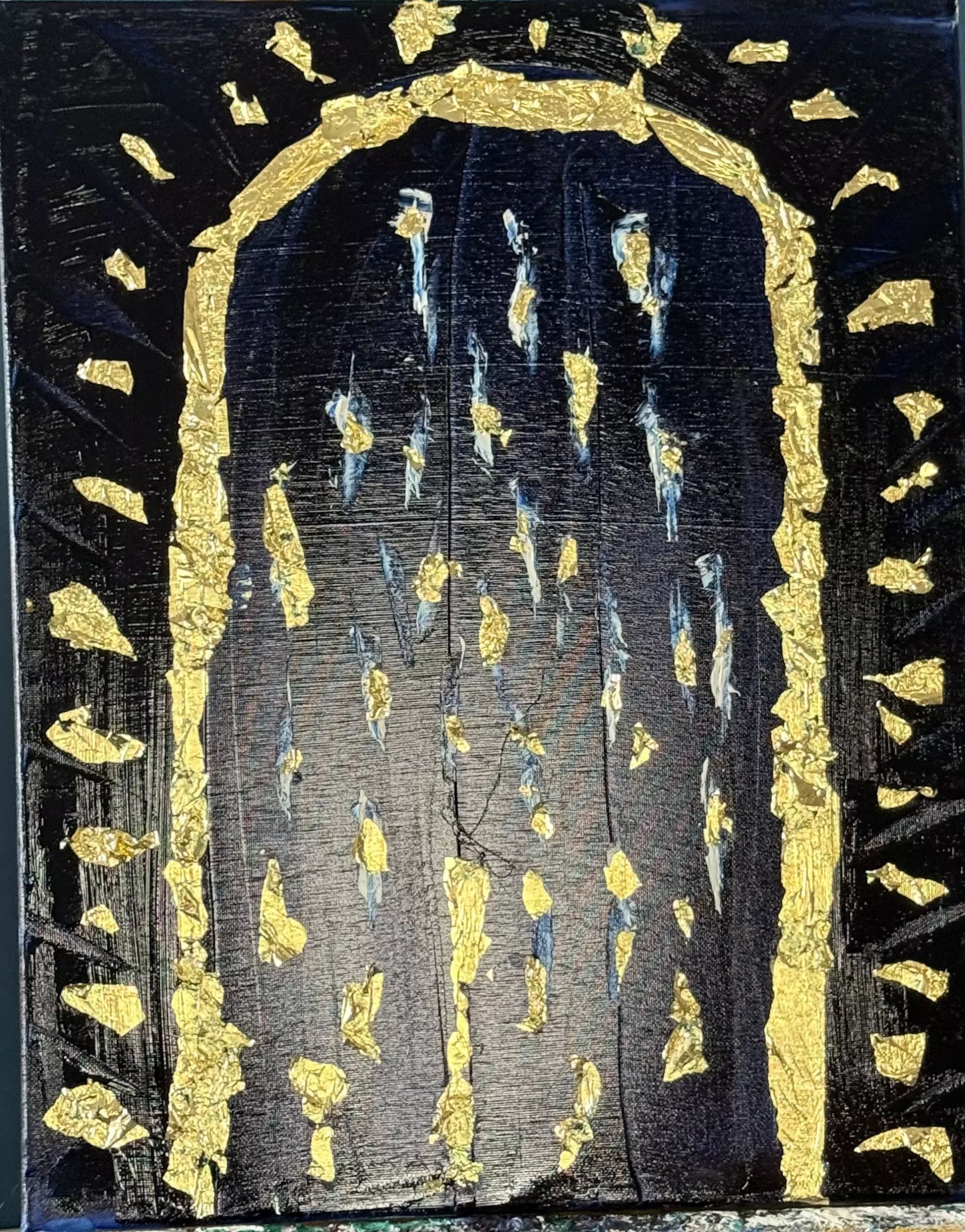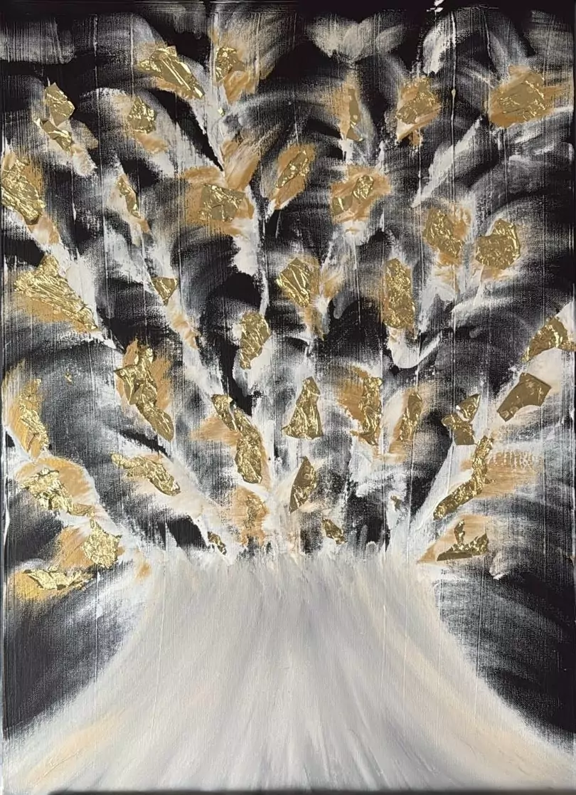 huile sur toile - Feuille d'or- Dimension 50x70 cm